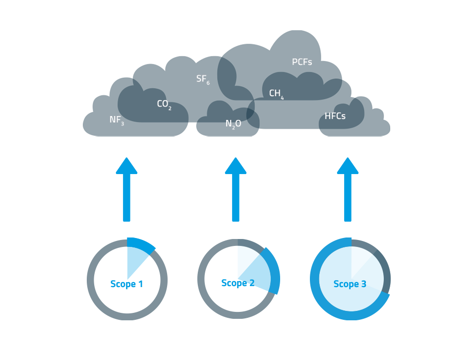 Der CO²-Fußabdruck ist gemäß des Greenhouse Gas Protocol (GHG-Protokoll) in so genannte „Scopes“, Teilbereiche der Emissionen, unterteilt. Hierfür werden u. a. die Emission der Fahrzeugflotte, des Stromverbrauchs oder die indirekten Emissionen der Wertschöpfungskette berücksichtigt.